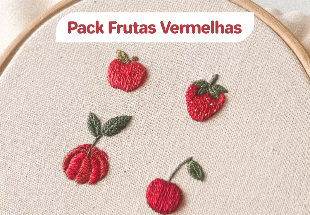 Neste módulo você irá aprender a bordar 4 frutinhas fofas, (maçã, morango, pintanga e cereja).