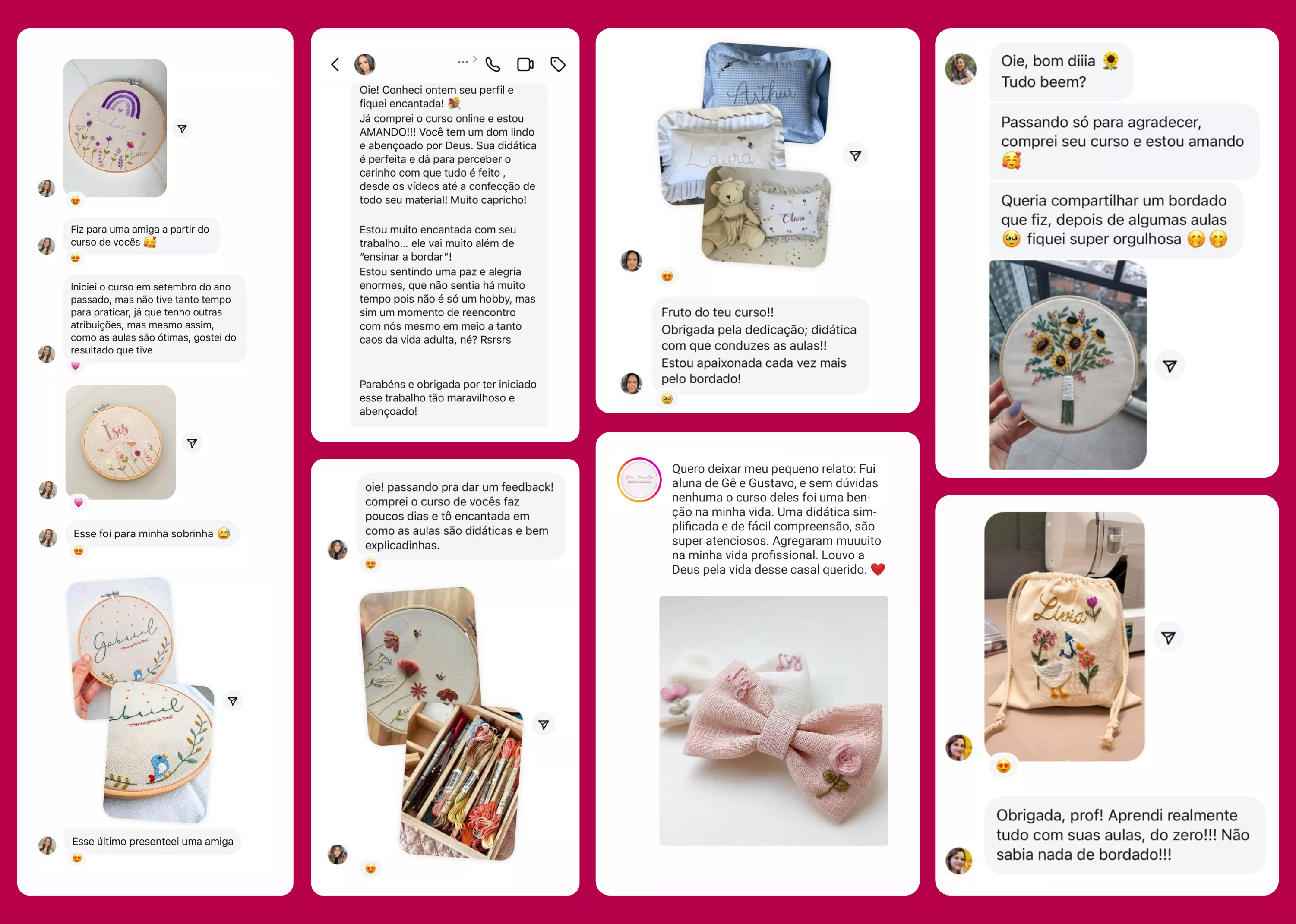 Criamos este curso com muito carinho pra você, que gosta do nosso trabalho e quer aprender a bordar do zero — mesmo que nunca tenha segurado uma agulha antes!