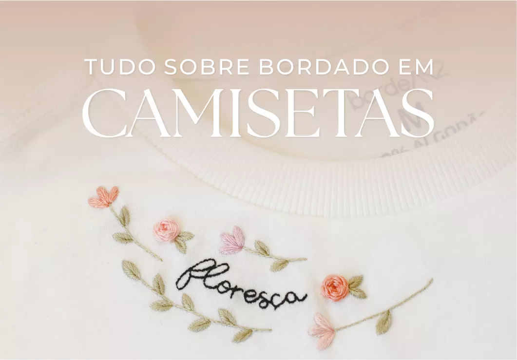 Um módulo exclusivo sobre camisetas: Tipos de malha, como posicionar o risco para bordar, finalização do avesso e uma aula exclusiva bordando a camiseta floresça.